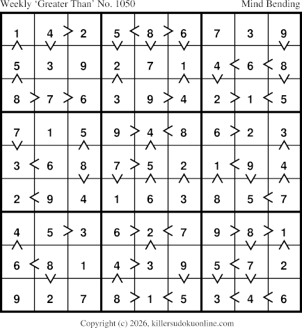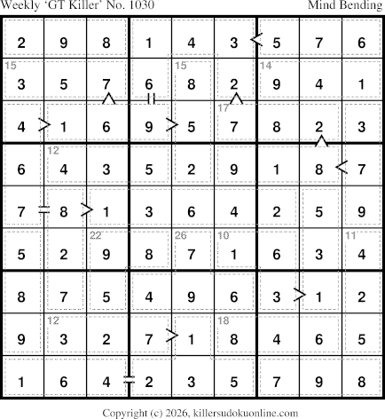 Weekly “Greater Than” Killer sudoku for week starting 1/12/2026