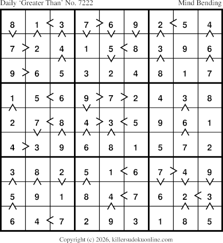 Weekly “Greater Than” Killer sudoku for week starting 1/19/2026