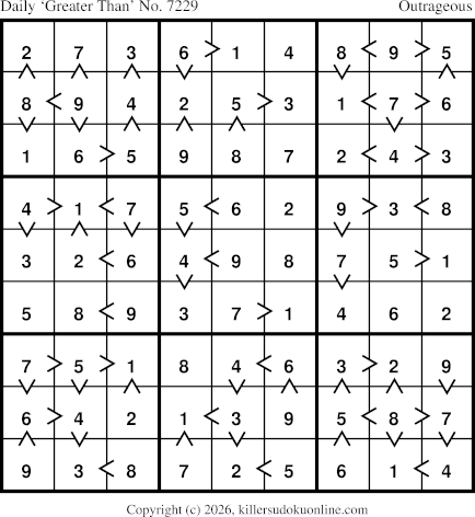 Weekly “Greater Than” Sudoku for week starting 1/26/2026