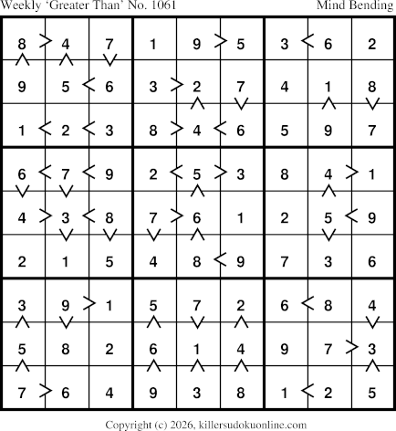 Weekly “Greater Than” Killer sudoku for week starting 3/30/2026
